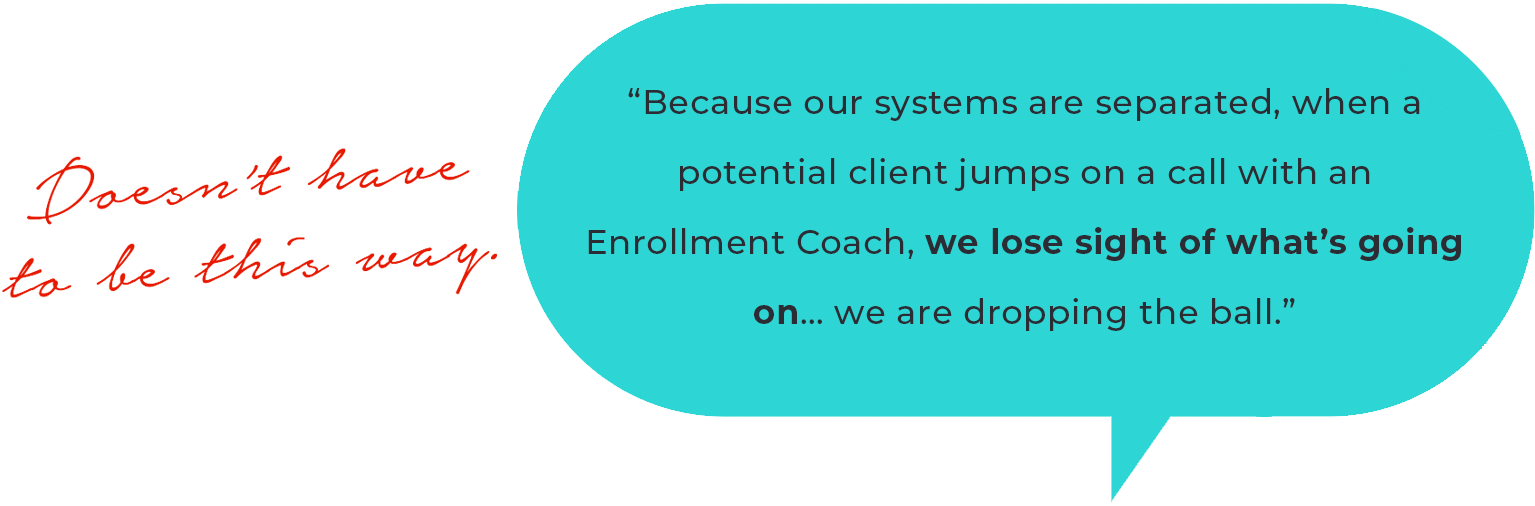 "We have one vision as the business owners where we can see ‘these are all the calls that are booked this week, these are the stats on how many calls the enrollment coaches have taken and converted, these are the clients coming into the program this week, here is a list of everybody in the their lifecycle before they graduate from the program'… So we can now manage everything in one place."